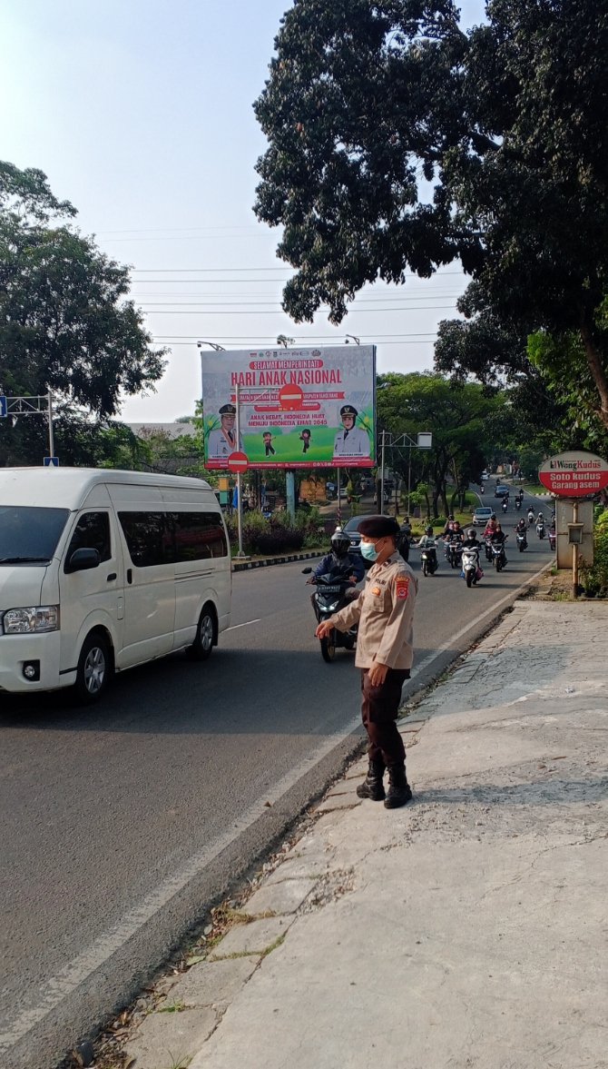 Anggota Sat Pam Obvit Polresta Tangerang melaksanakan kegiatan Pelayanan Masyarakat/Pengaturan Arus Lalu lintas guna kelancaran dan tidak terjadi kecelakaan lalu lintas.