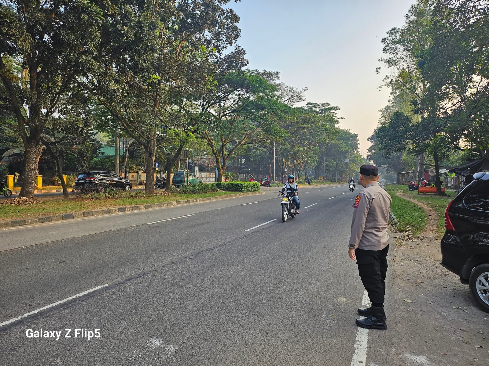 Pelayanan Arus Lalu Lintas Pagi Hari, Sat Pamobvit Polresta Tangerang di depan gedung Golkar Tigaraksa Tangerang